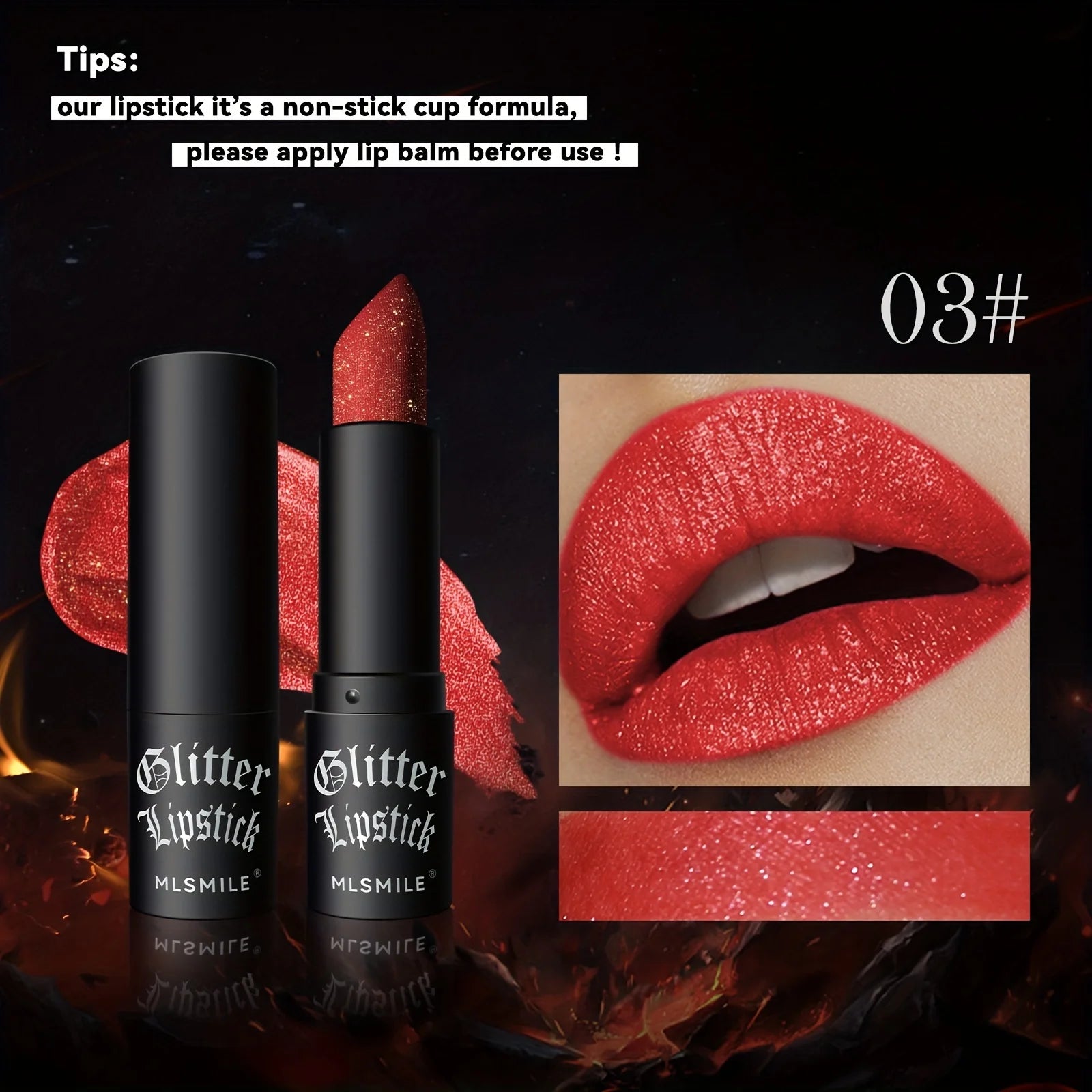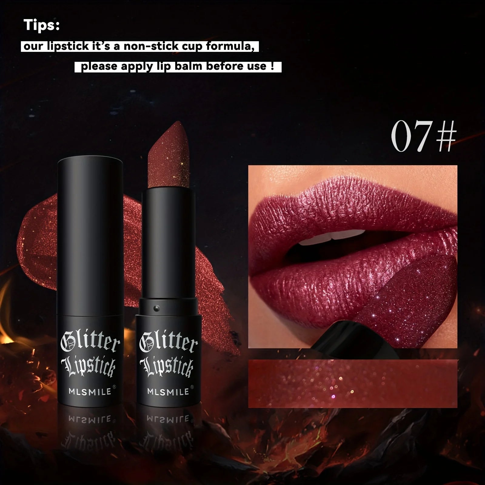 Hydrating Sparkling Glitter Lipstick Nonstick Shine Highly Pigmented Formula Gives Metallic Finish Lip Makeup
