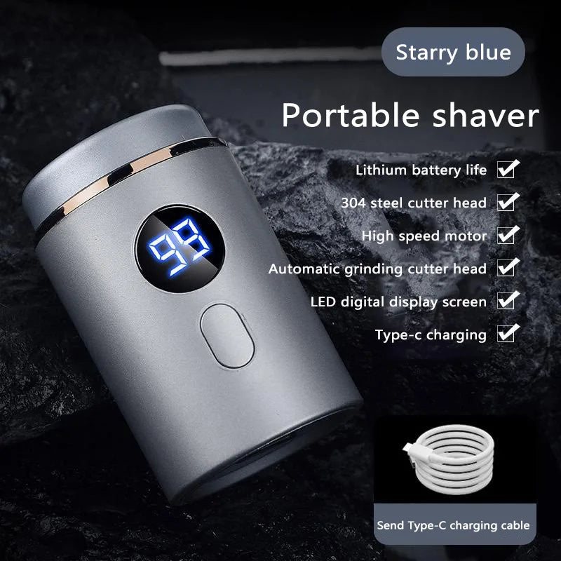 Waterproof Portable Men's Electric Mini Rechargeable Shaver Razor Type-C Charging LED Digital Display Great for Travel, Home, Car, Office