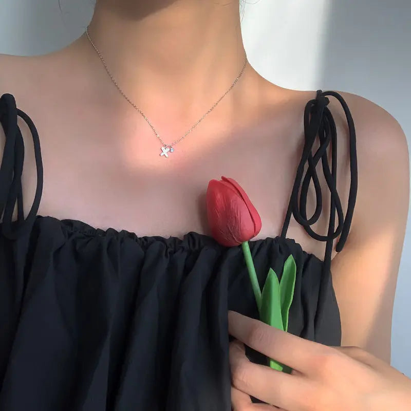 Elegant Crystal Star 925 Sterling Silver Necklace for Women Fine Jewelry Accessories