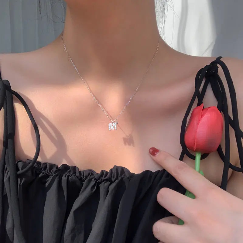 Elegant Crystal Initials Letter 925 Sterling Silver Chain Necklaces for Women Shiny Pendant Collar Jewelry Accessories
