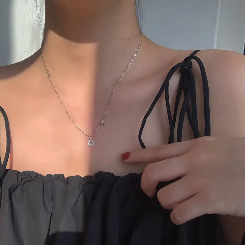 Elegant Double Layer S925 Sterling Silver Circle Crystals Pendant Tassel Necklace for Women Fine Choker Jewelry Accessories