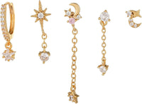 6pcs Huggie Circle Punk Trendy Stainless Steel Minimalist Hoop Earrings for Women Crystal Zirconia Earrings Piercing Jewelry