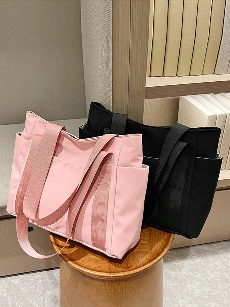 Durable Nylon Large Capacity Shoulder Tote Bag For Women Casual Bag With Multiple Pockets Lightweight Travel Handbag Tote