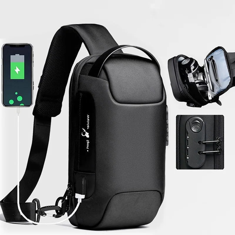 Anti-Theft Men's USB Crossbody Satchel Shoulder Bags Oxford Cloth Waterproof Multifunctional Travel Messenger Chest Waist Bag