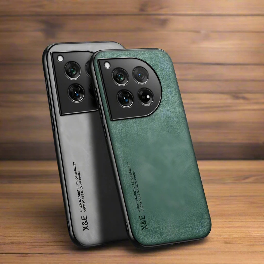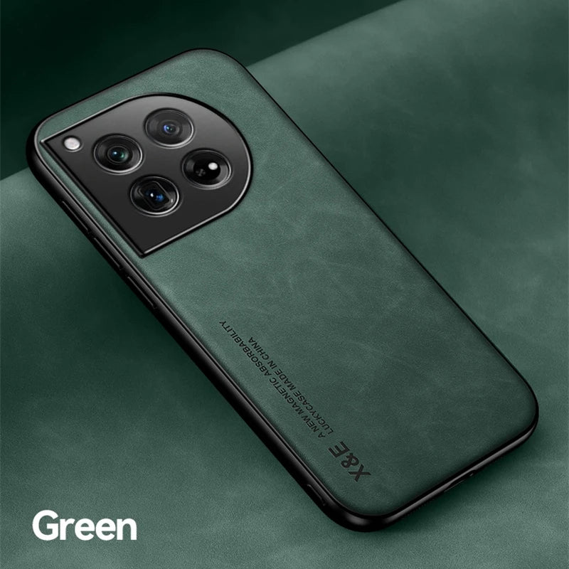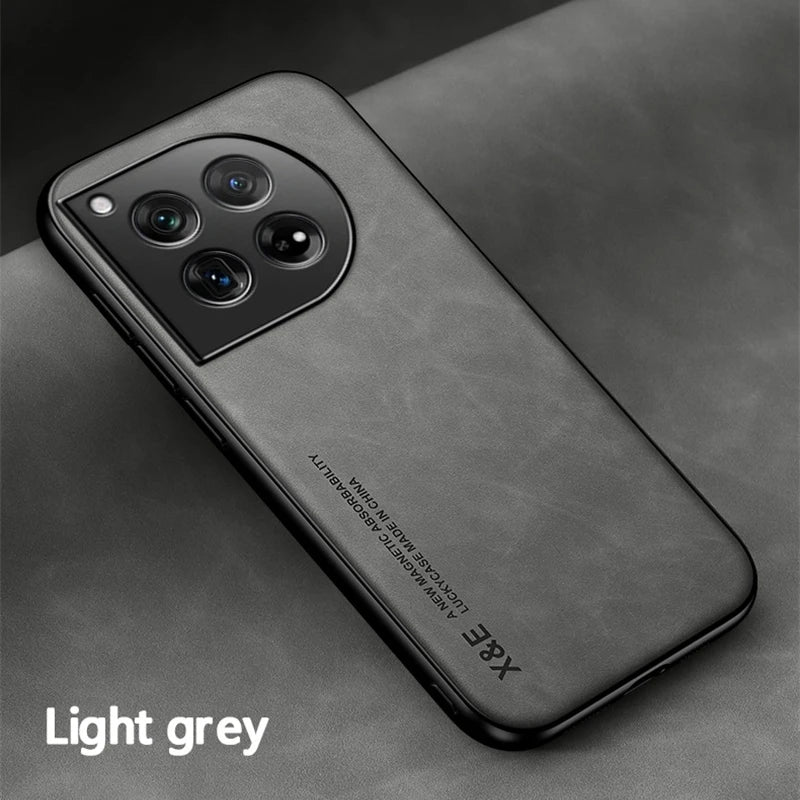 Elegant Leather Phone Case for OnePlus 12 12R Protective Shockproof Cover with Built-in Magnetic Car Holder