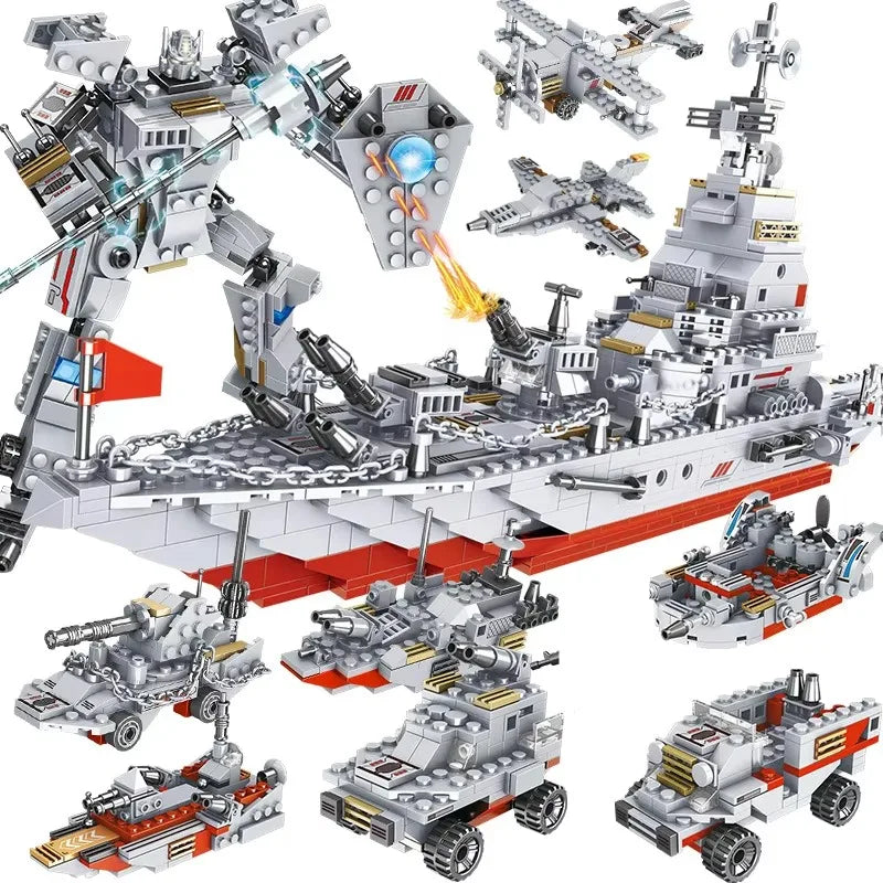 8 in 1 Army Ocean Cruiser Warship Building Blocks 1000pcs Set Aircraft Carrier Army Ship Transformer Bricks Toys for Children