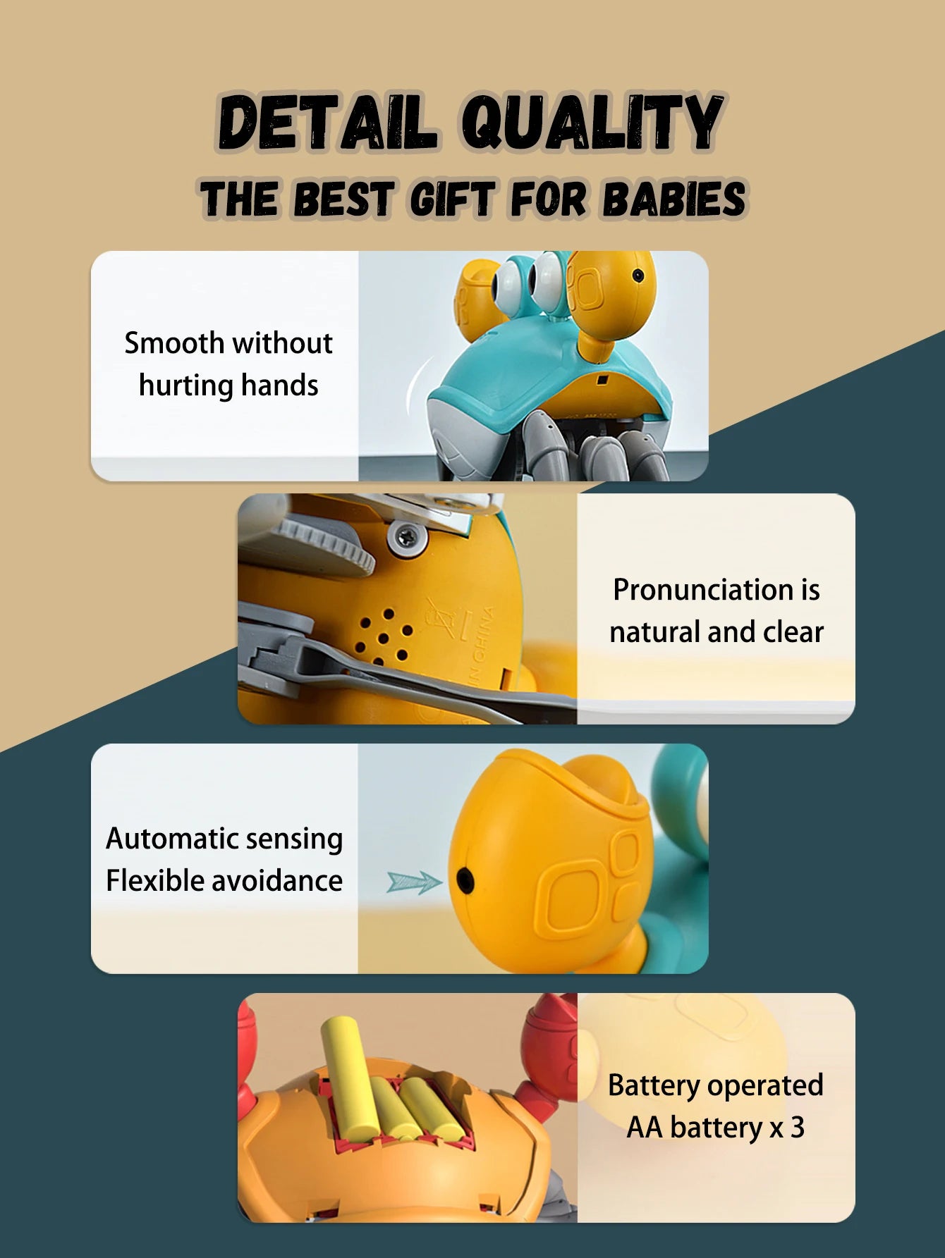 Auto-Sensing Escape Crab Electronic Pet Crawling Avoiding Obstacles Toy With Sounds for Kids and Children