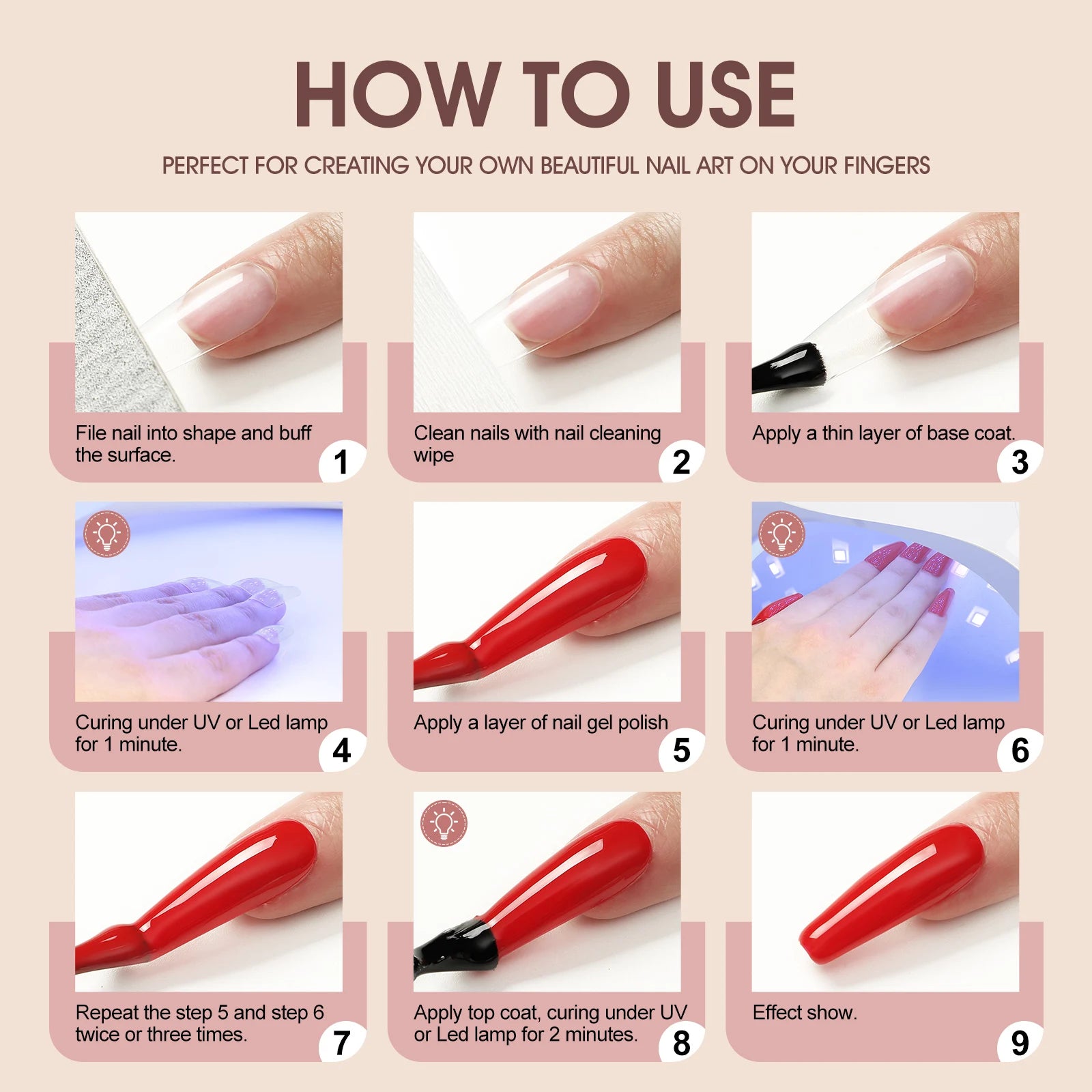 Step 4. Apply first layer of color gel directly, cure with UV lamp for 2 minutes or cure with LED lamp for 60 seconds.