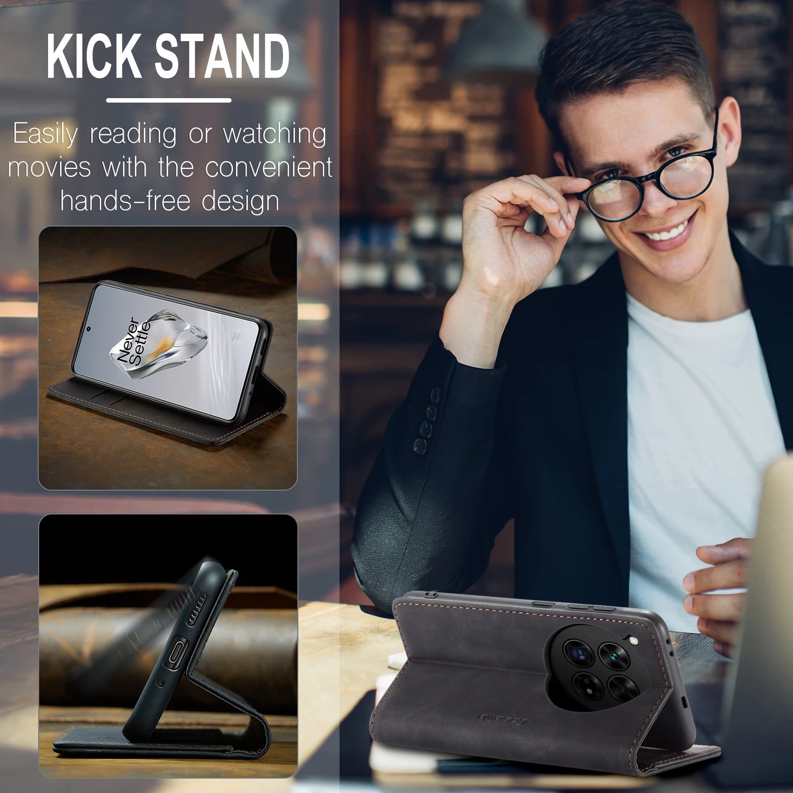 Deluxe Leather Wallet Phone Case for OnePlus 12 11 Multiple Card Slots Stand Function Protective Cover