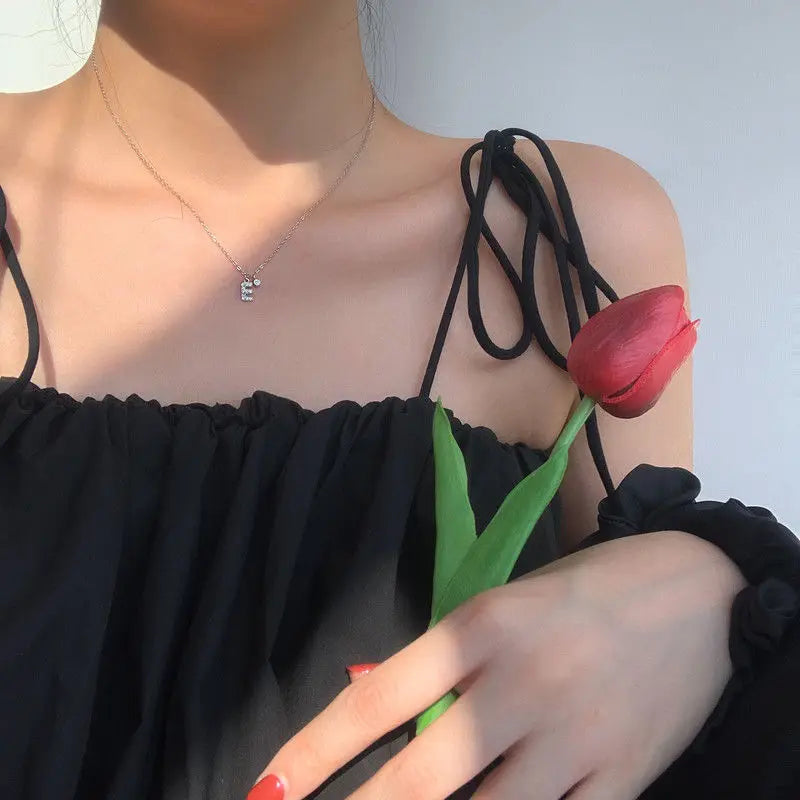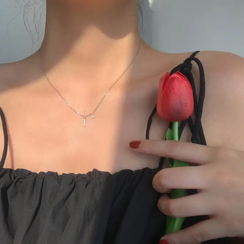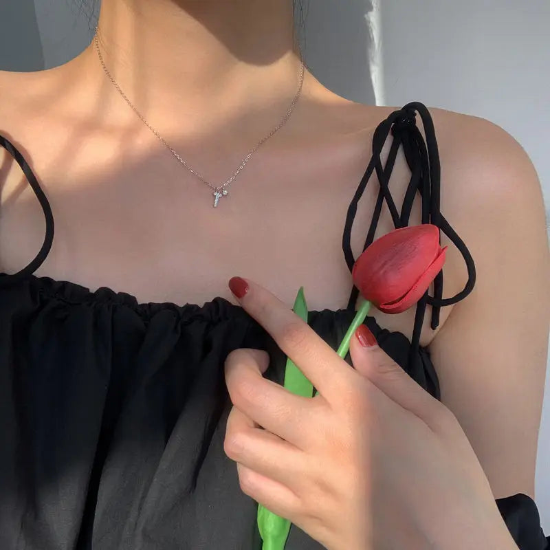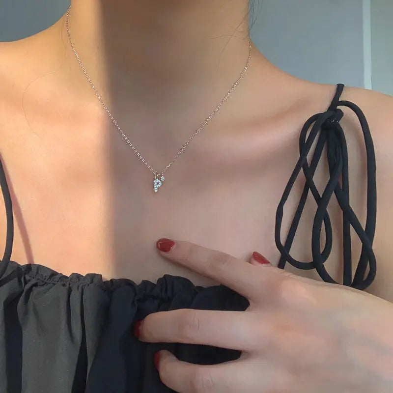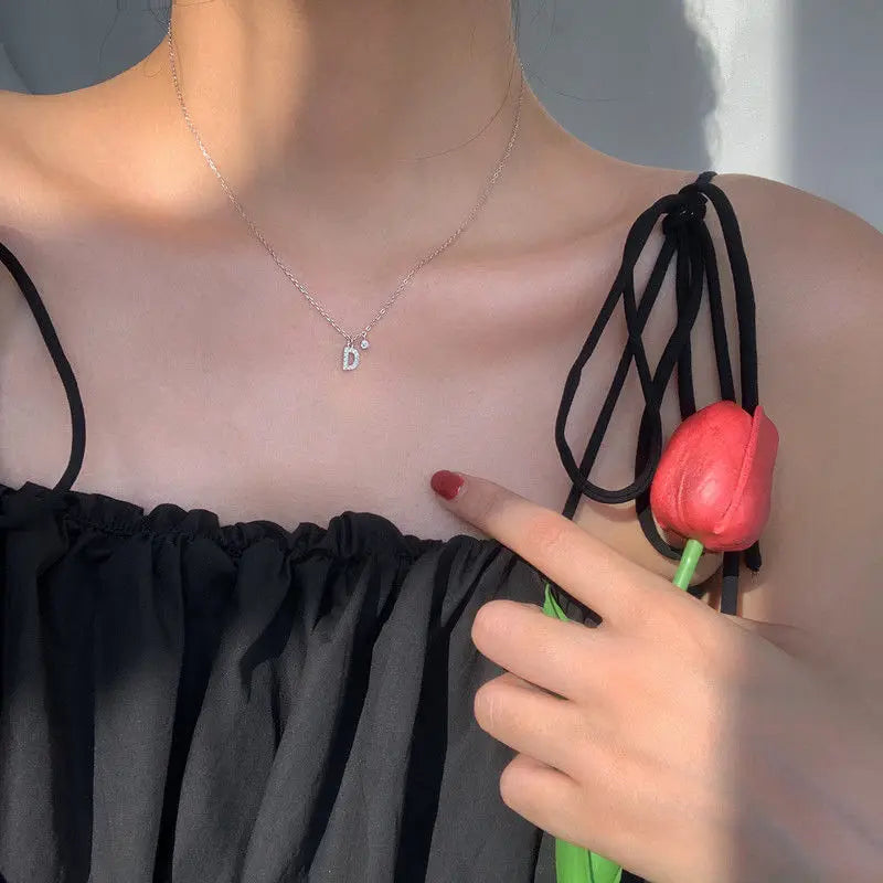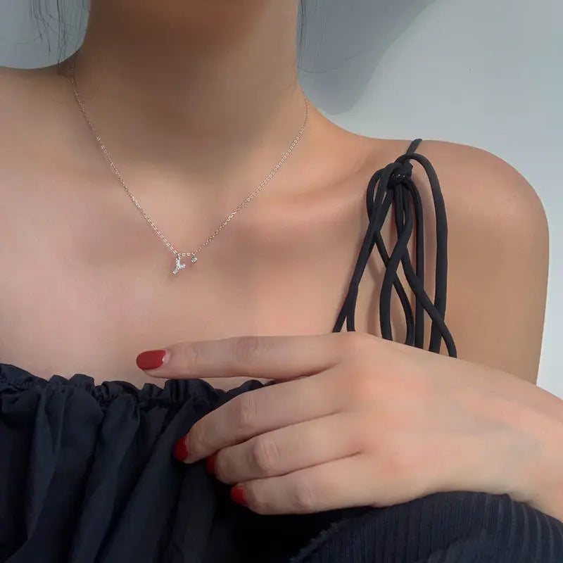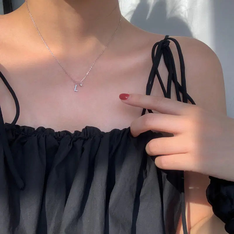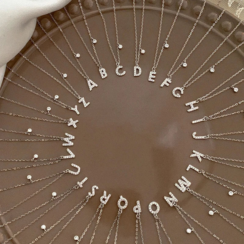 Elegant Crystal Initials Letter 925 Sterling Silver Chain Necklaces for Women.