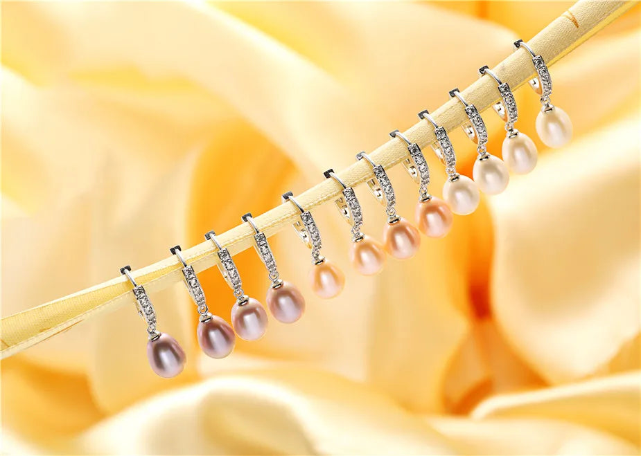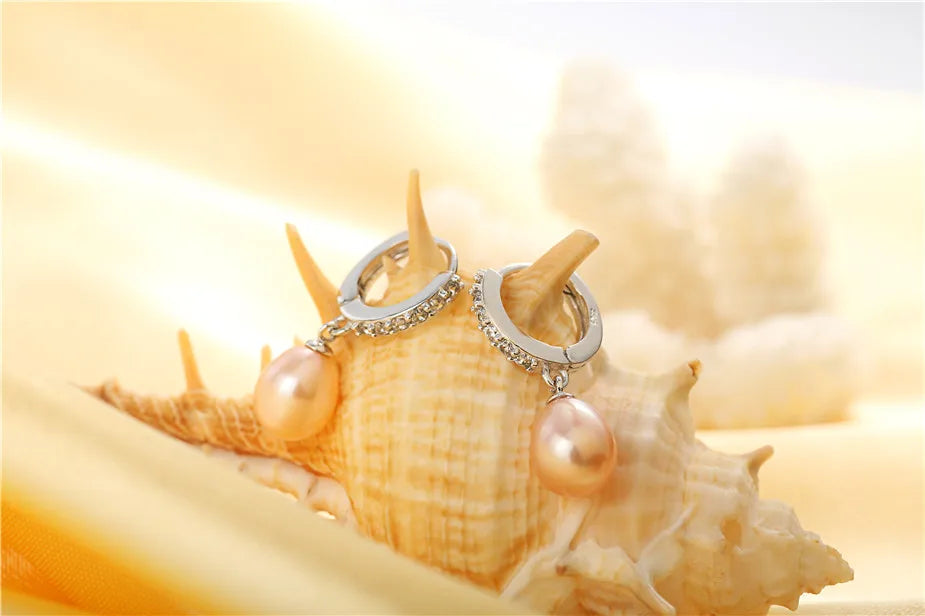 Exquisite Crystals Natural Pearl Hoop Drop Earrings for Women Girls 925 Sterling Silver Dangle Genuine Freshwater Pearls Zircon Jewelry