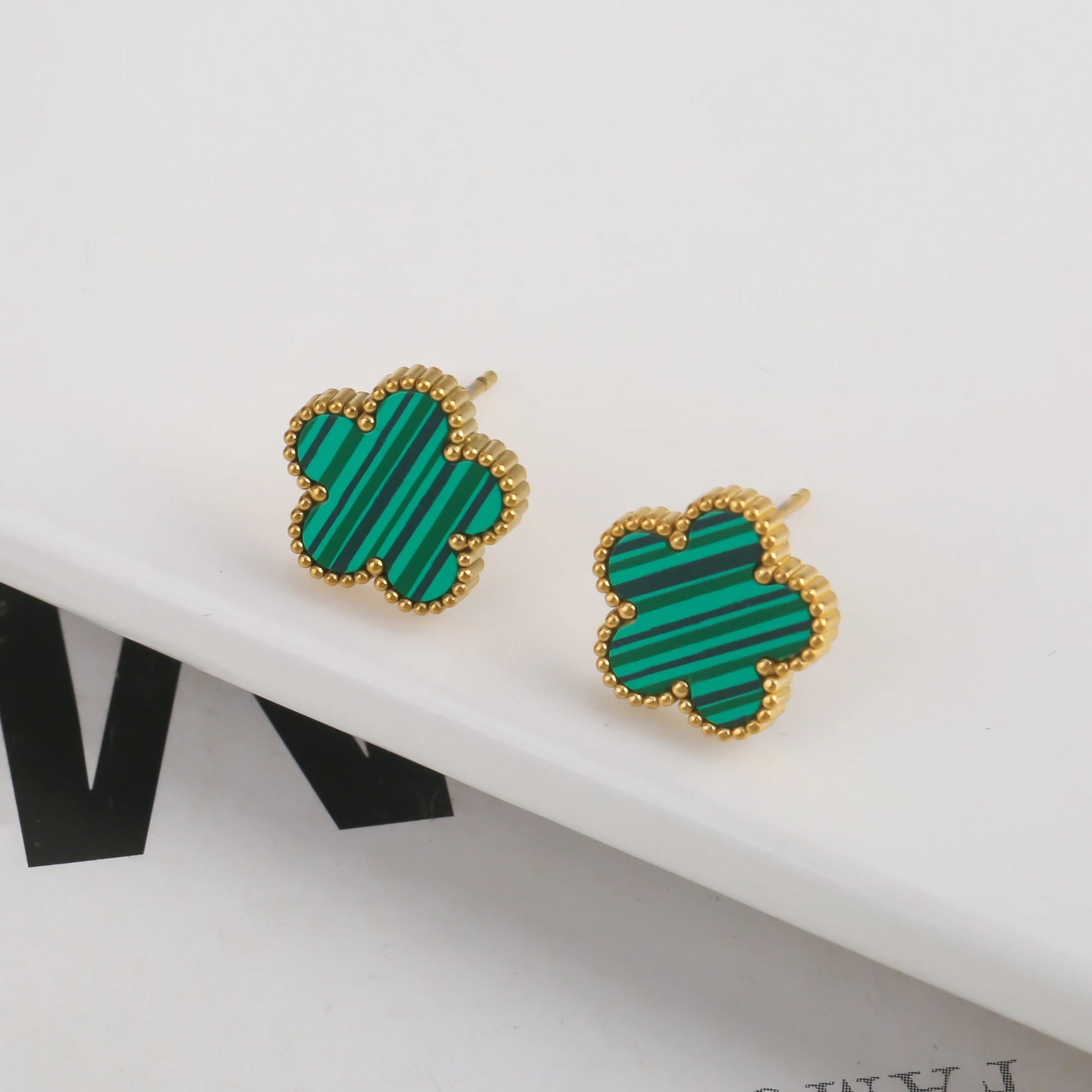 Five Leaf Clover Adjustable Lucky Design Gold Plated Stainless Steel 316L Plant Flower Bracelet Earrings Necklace With Petals Women's Luxury Gifts