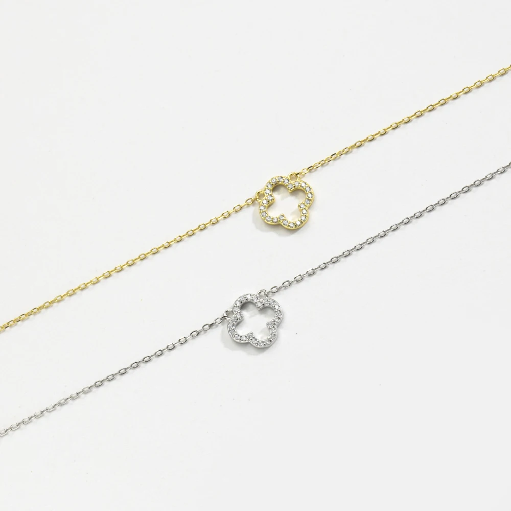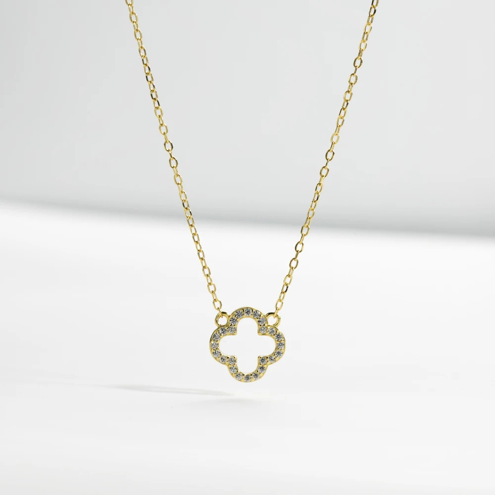 Four Leaf Clover Pendant Necklace 925 Sterling Silver Gold Color Flower Chain Luxury Fine Womens Jewelry