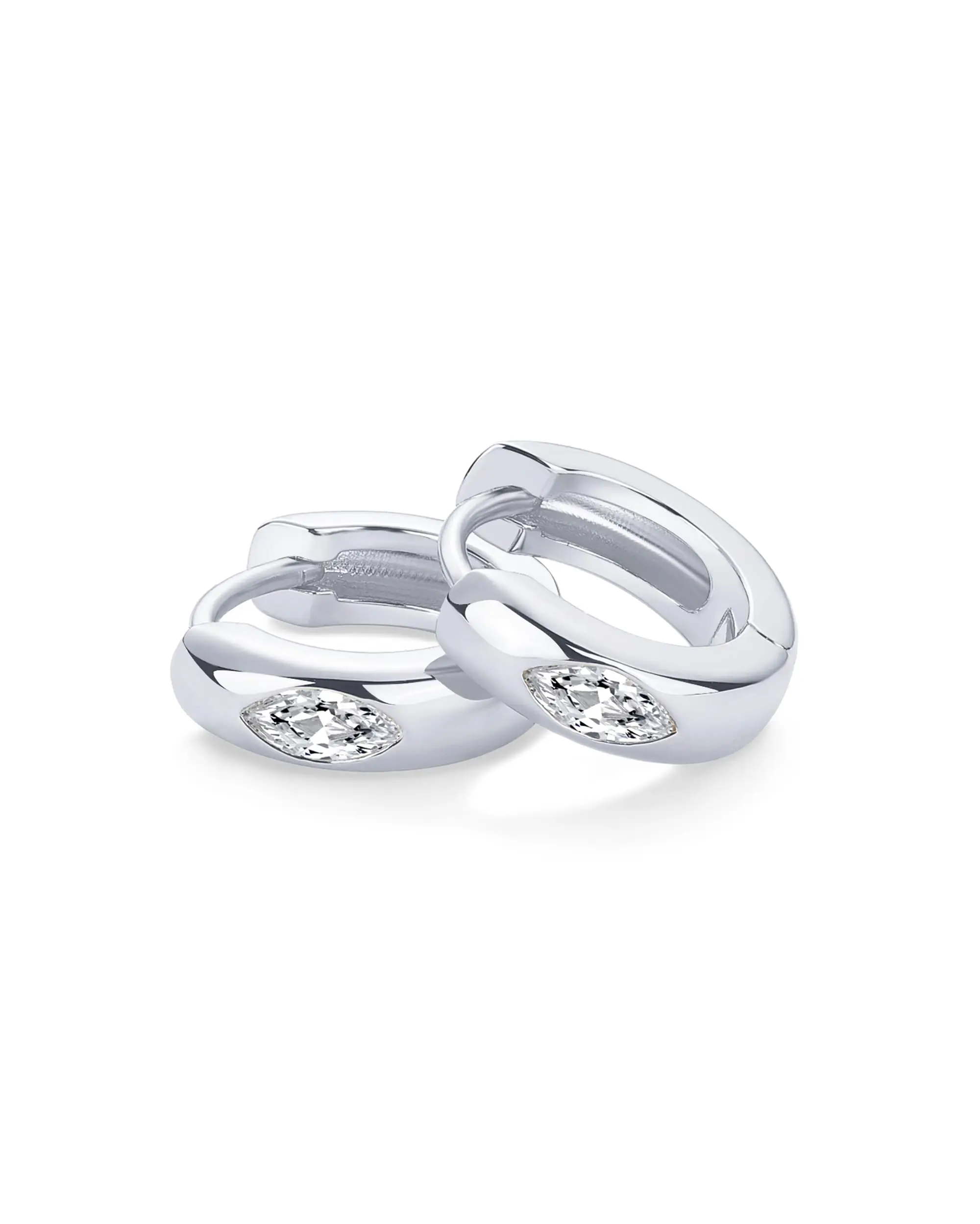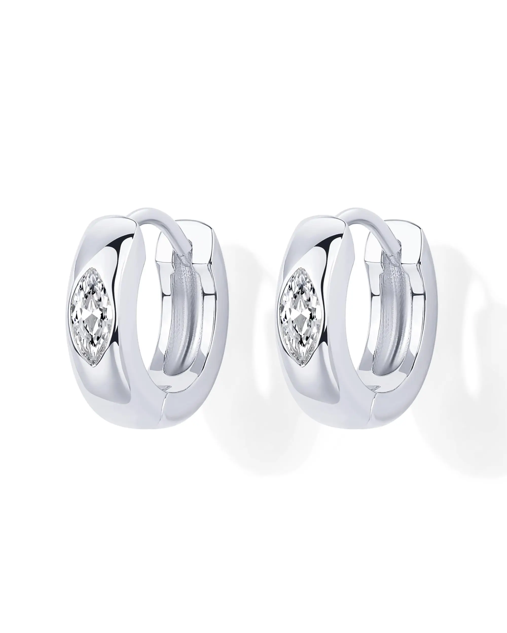Huggie Hoops 14K Gold Plated Earrings With Sterling Silver Posts Cubic Zirconia Noble Marquise Small Earrings
