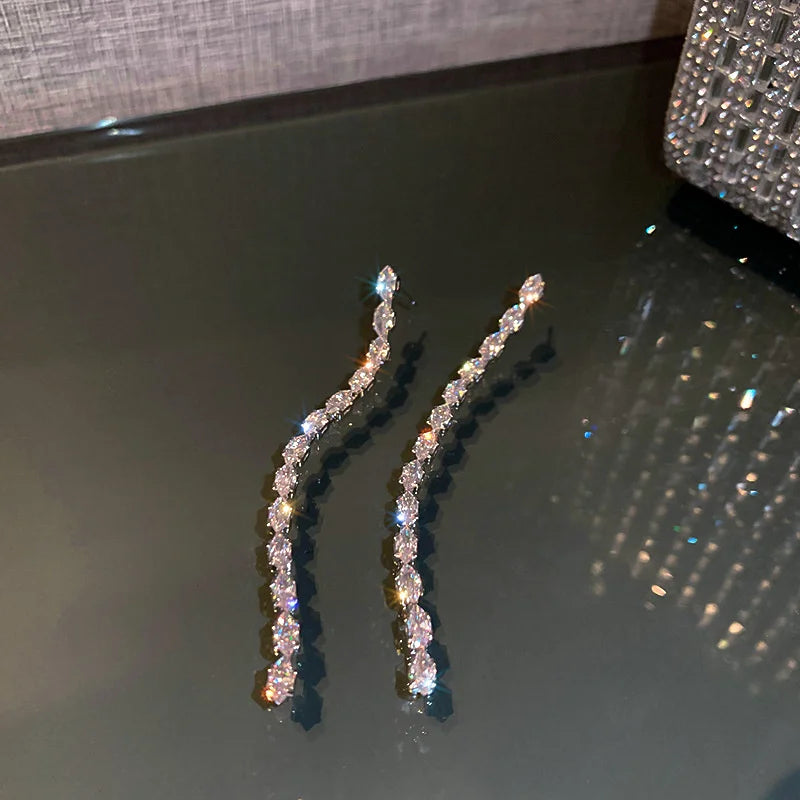 Long Tassel Dangle Crystal Earrings for Women Girls Gold Silver Color Elegant Zircon Jewelry
