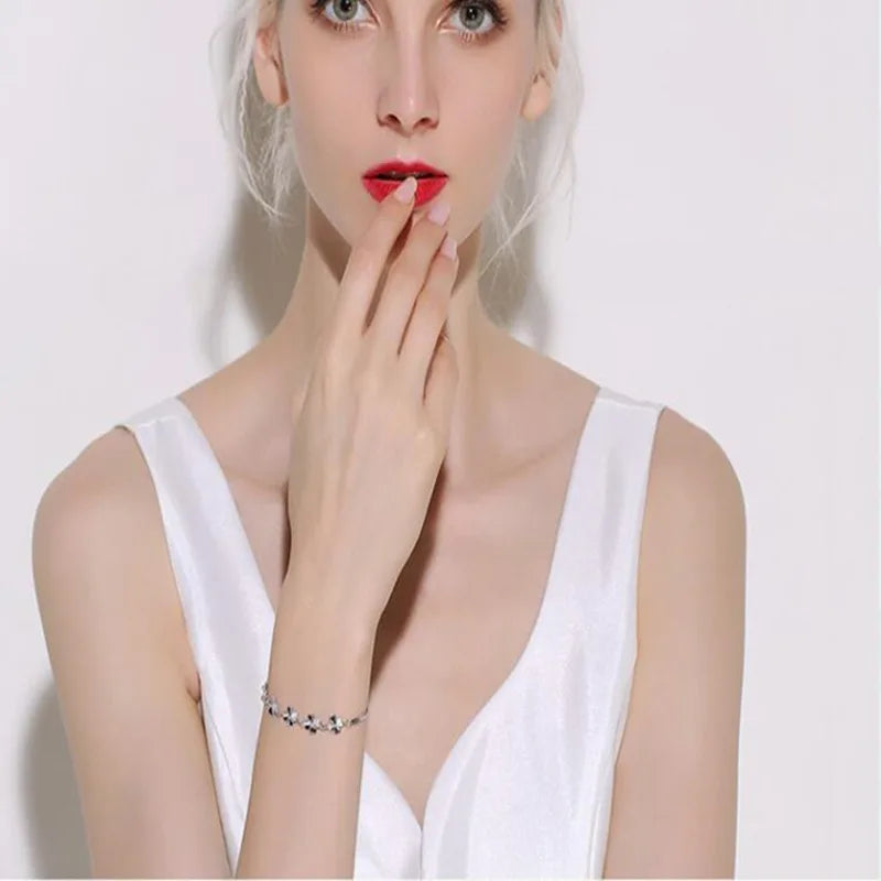 Luxury Crystal Lucky Clover 925 Sterling Silver Bracelets for Women.