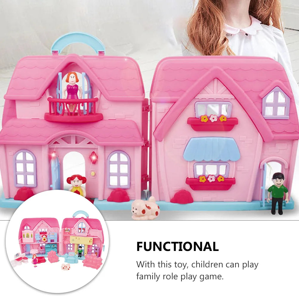 Portable Two Story Doll House Villa Toy Family Role Play Game Dollhouses for Children Accessories Easy Carry Gift
