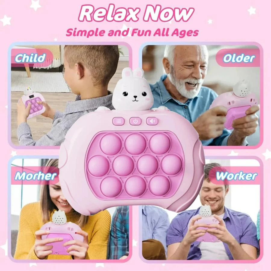 • Engaging Cartoon Design: The Pop Quick Push Bubbles Game Machine features an engaging cartoon design that captivates children's attention, making learning fun and enjoyable.
