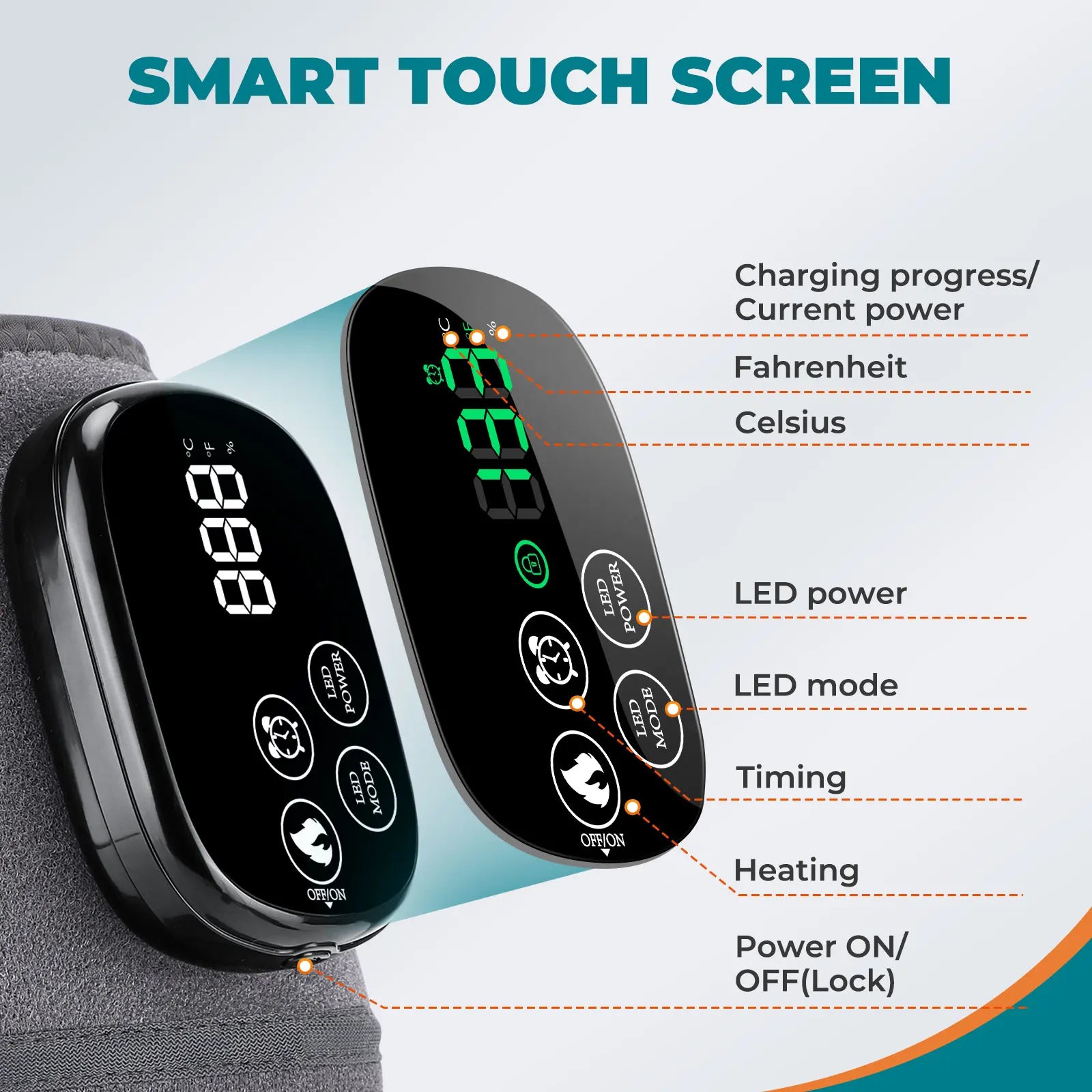 7. Digital Display Controller—Exclusive patented design, touch screen buttons, dual temperature units (℃/℉), charging progress /current power /heating temperature /timing time, anti-touch mode, more user-friendly operation.