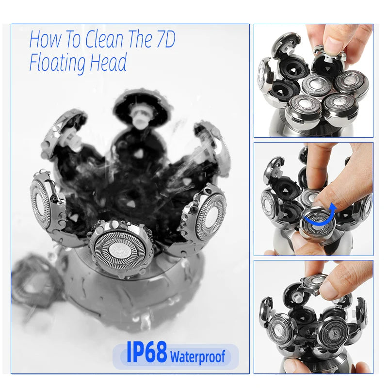 Waterproof 5 in 1 Electric Head Beard Shaver Trimmer Clippers for Men 7D Floating Precision IP68 Waterproof Shaving USB Wireless Charging Multi Device